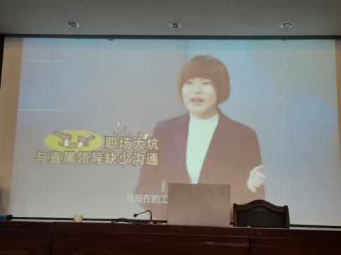 讲座一开始,李副局长为大家播放了由上海杨浦区就业促进中心制作的精品课程,为大家讲解了职场沟通技巧和刚入职后需要注意的一些细节。李副局长提到,当前就业形势严峻,毕业生们应该从以下几个方面来积极应对:一是要明确自我定位;二是要提升自己的就业竞争能力;三是要提前做好知识储备,正所谓“知己知彼,才能百战百胜”。