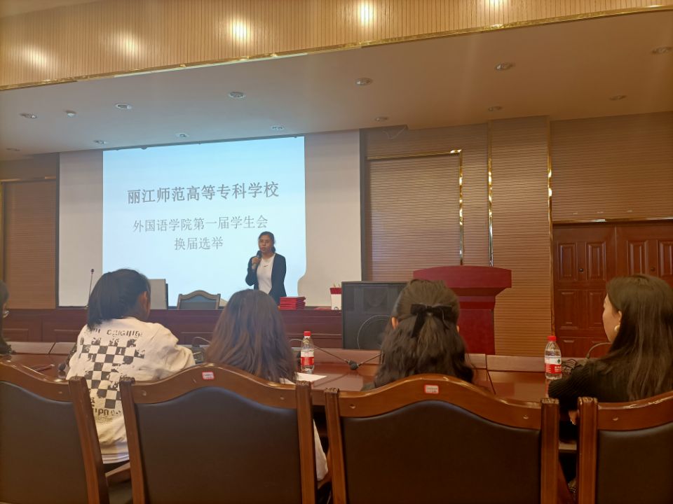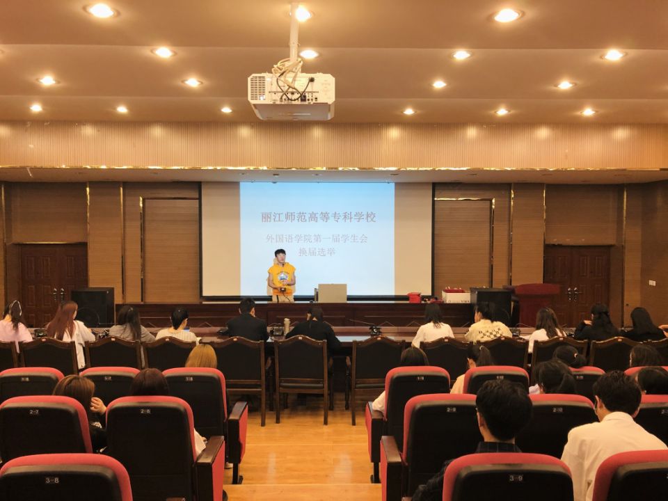 在上一届学院学生会主席余国俊宣布选举流程后,参与竞选的同学依次登台进行了竞选演讲,换届工作有序进行。参与本次换届选举的老师及上一届干部们针对不同岗位,对参选的同学进行了提问,并给予了中肯的建议。经过激烈角逐,以袁加丽同学为学生会主席的新一届外国语学院学生会干部产生。