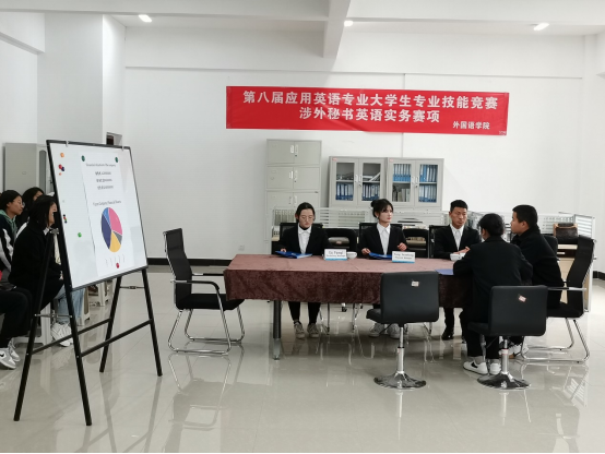 比赛内容包括涉外秘书工作情景模拟表演和口译(汉译英)两部分。学生以小组团体形式参赛。学院层面设置一等奖1组,二等奖2组,三等奖3组,获奖面大,极大鼓励全体同学积极参与专业技能比赛。教研室和指导教师认真对待本次应用英语专业技能比赛,赛前组织培训并安排4名指导教师指导9个小组参赛,并组织2021级应用英语专业新生观摩比赛和协助组织比赛,为应用英语专业学生相互交流学习,直观了解专业和职业创造了良好的机会。