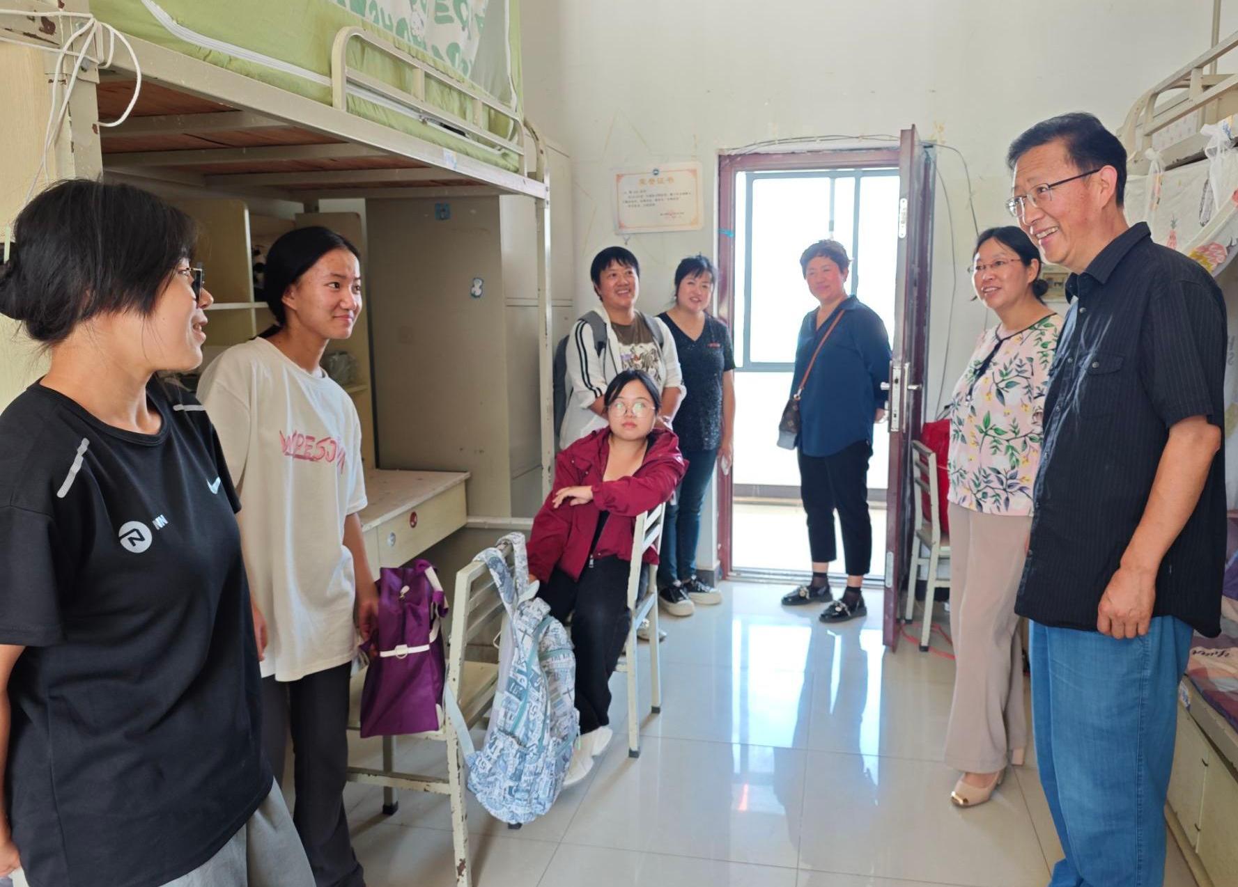 为了解新生进入校园后的生活情况,学院领导班子成员、辅导员及新生班主任到宿舍走访,实地查看学生生活用品是否齐全,住宿生活是否方便,与学生、家长聊家常。叮嘱同学们在学习生活中有任何问题,要及时向学院寻求帮助。强调同学们要增强安全防范意识,保持积极向上的状态,养成良好的生活习惯,遵守学校规章制度,锤炼过硬本领,争做有理想、敢担当、能吃苦、肯奋斗的新时代好青年。